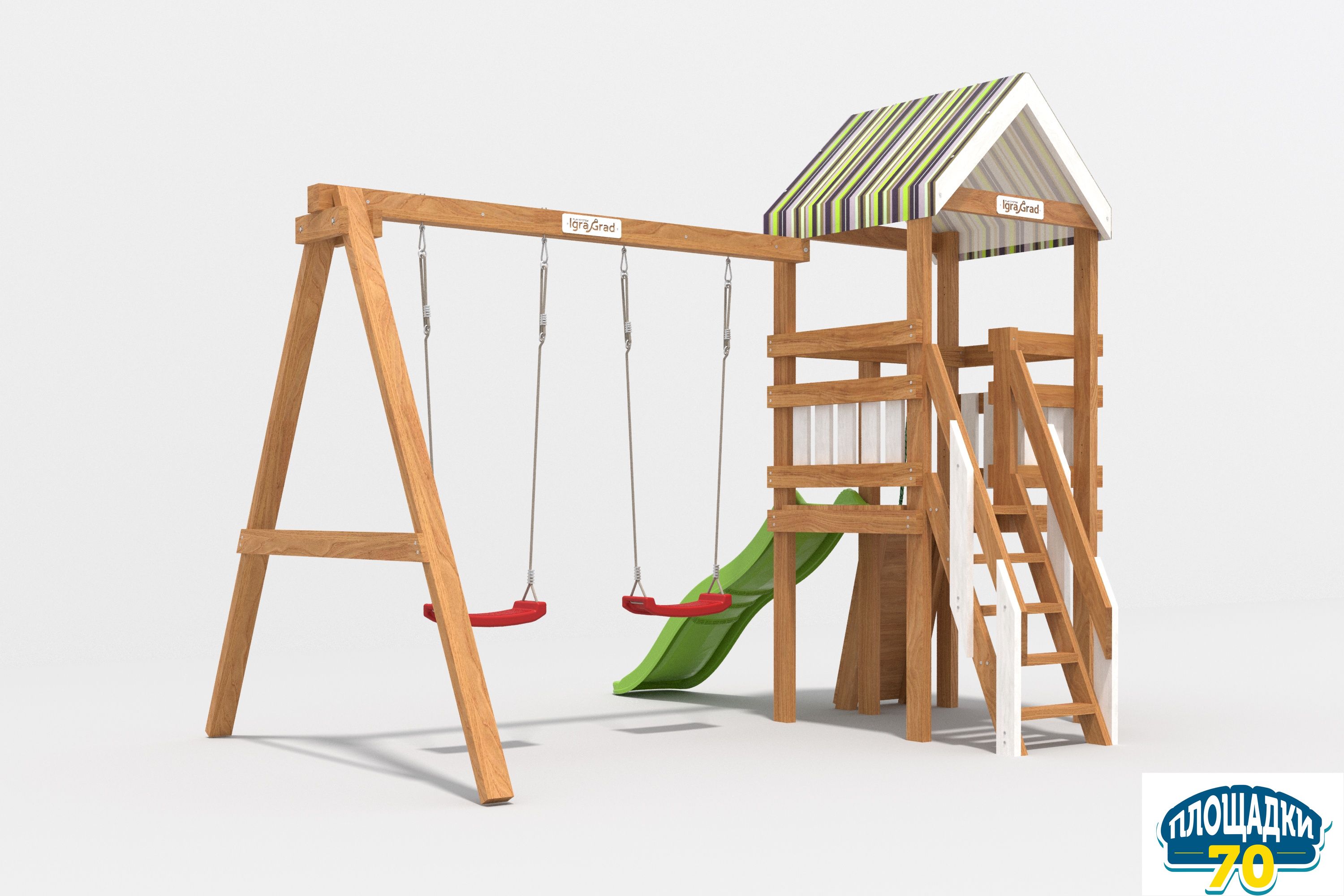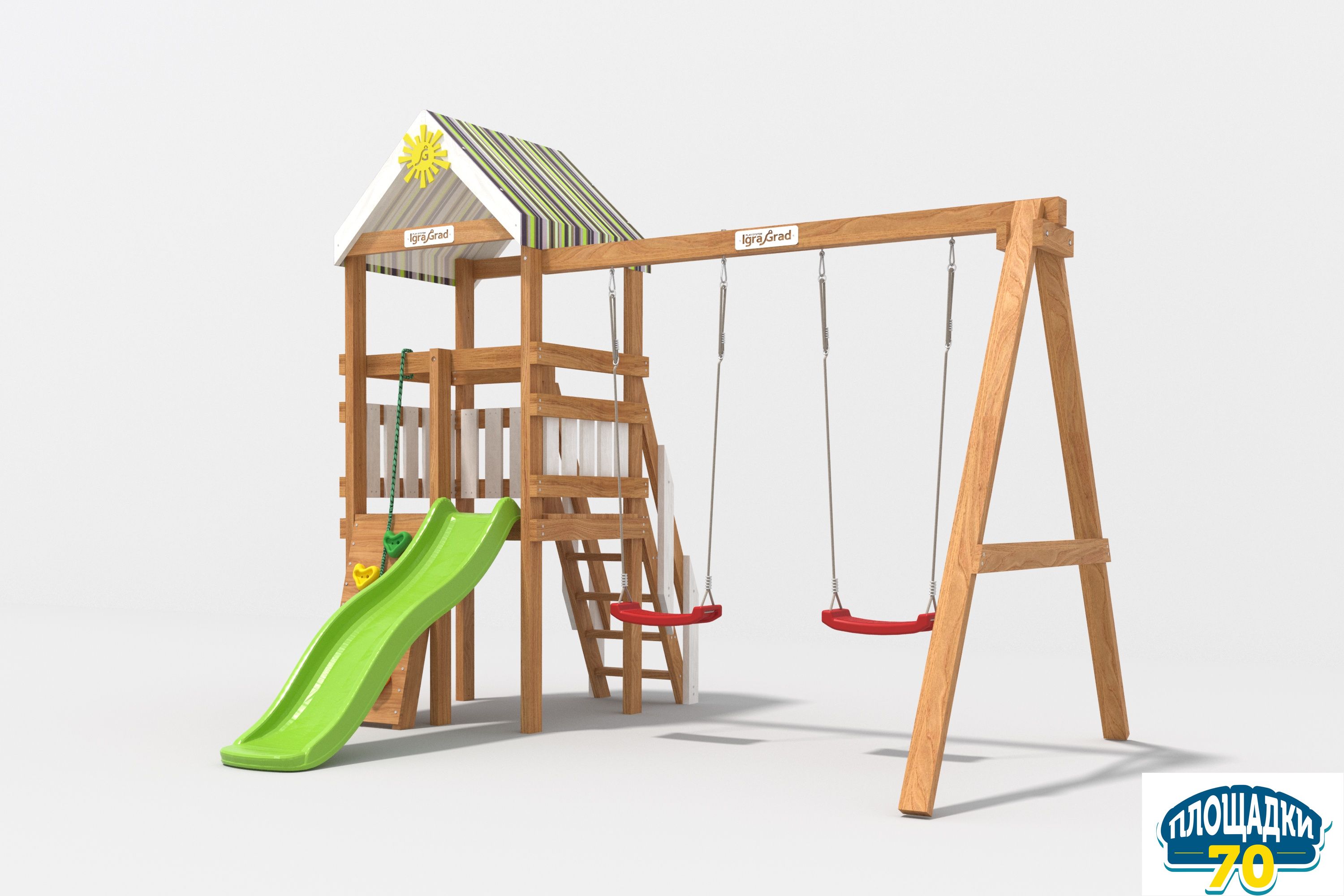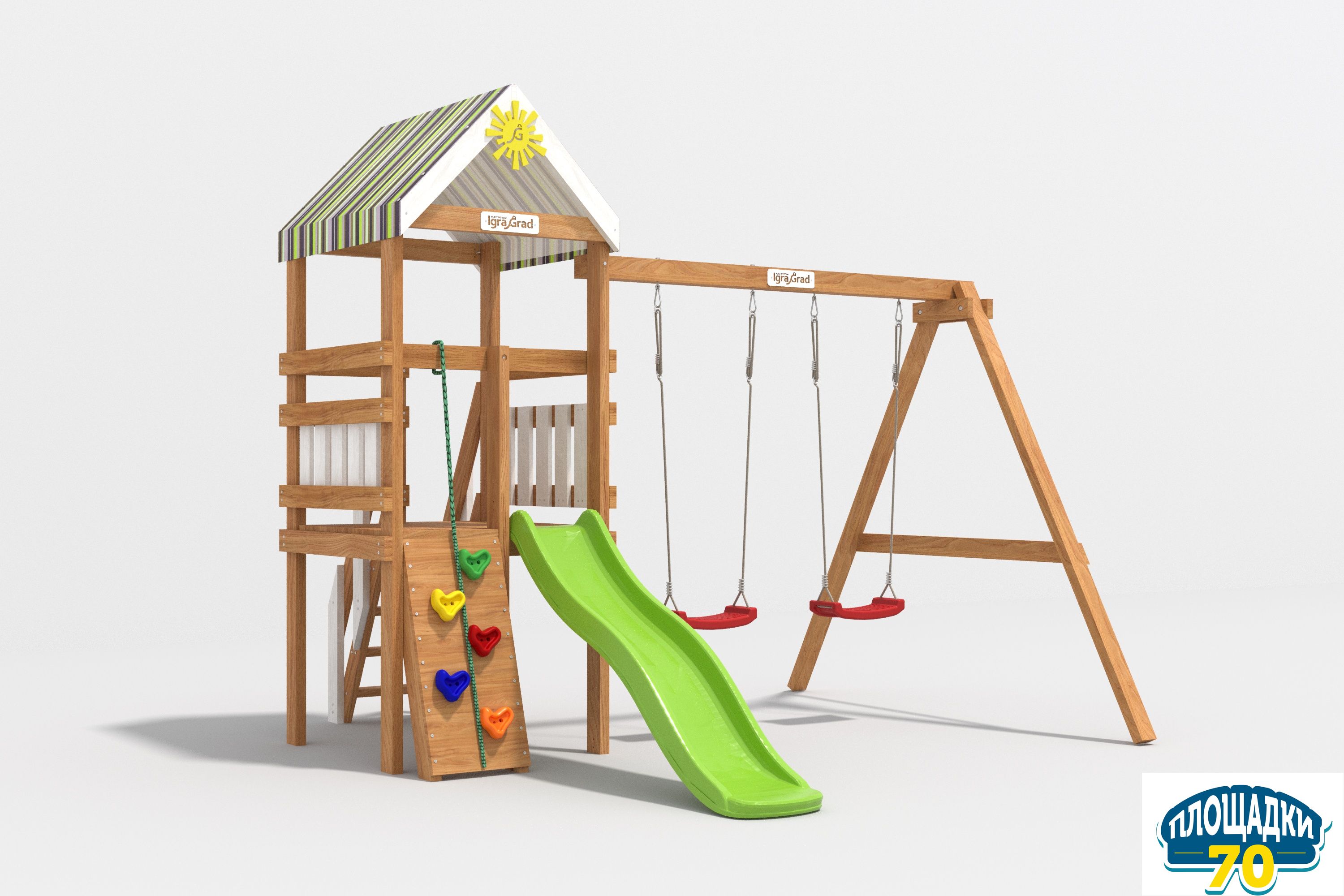 Подарите своим детям мир приключений с игровым комплексом IgraGrad B0 Это настоящий центр развлечений для маленьких непосед. Он включает в себя: Уютный домик с крышей: идеальное место для игр. Захватывающую горку с высоты 0,9 метра: для веселых спусков и развития координации. Качельную балку на 2 качели лодочка. Скалодром: для развития силы и ловкости. Преимущества игрового комплекса IgraGrad B0: Эта модель для самого необходимого Изготовлен из экологически чистых материалов: дерево обработано специальным составом, безопасным для детей. Прочная и надежная конструкция: гарантирует безопасность во время игр. Яркий и привлекательный дизайн: поднимет настроение и вдохновит на новые игры. Развивает физические навыки и координацию: поможет вашему ребенку расти здоровым и активным. Легко собирается, имеет необходимые отверстия для сборки : вы сможете установить комплекс самостоятельно. IgraGrad B0— это лучший подарок для вашего ребенка! Комплектация детской площадки IgraGrad B0: Башня с тентованной крышей Волновая горка 1,75 м; Деревянная лестница с перилами; Качельный модуль; Пластиковые качели «лодочка» (2шт) Скалодром с камнями; Канат Декоративный элемент "Солнышко"; Шведская стенка Комплект фурнитуры; Руководство по сборке. * Штурвал, бинокль, колокольчик, телескоп, баскетбольное кольцо, являются опцией и заказываются отдельно. Габариты игрового комплекса для детей составляют: - Длина, м: - Высота, м:; - Ширина, м:. Сборка площадки: 15000 руб. При заказе услуги сборки - доставка до 50 км от МКАД осуществляется бесплатно Обращаем Ваше внимание, что цвет установленной детской площадки может отличаться от представленных изображений на сайте. Специфика окраски нетоксичными пропитками допускает отклонения в цветовой гамме отгружаемых изделий вследствие различного цвета натурального природного сырья и естественных компонентов, используемых для производства площадок. Производитель оставляет за собой право менять цвет отдельных элементов, в зависимости от наличия палитры пропиток на производстве. Пожалуйста, при оформлении заказа уточняйте наличие необходимого вам цвета в отделе продаж.