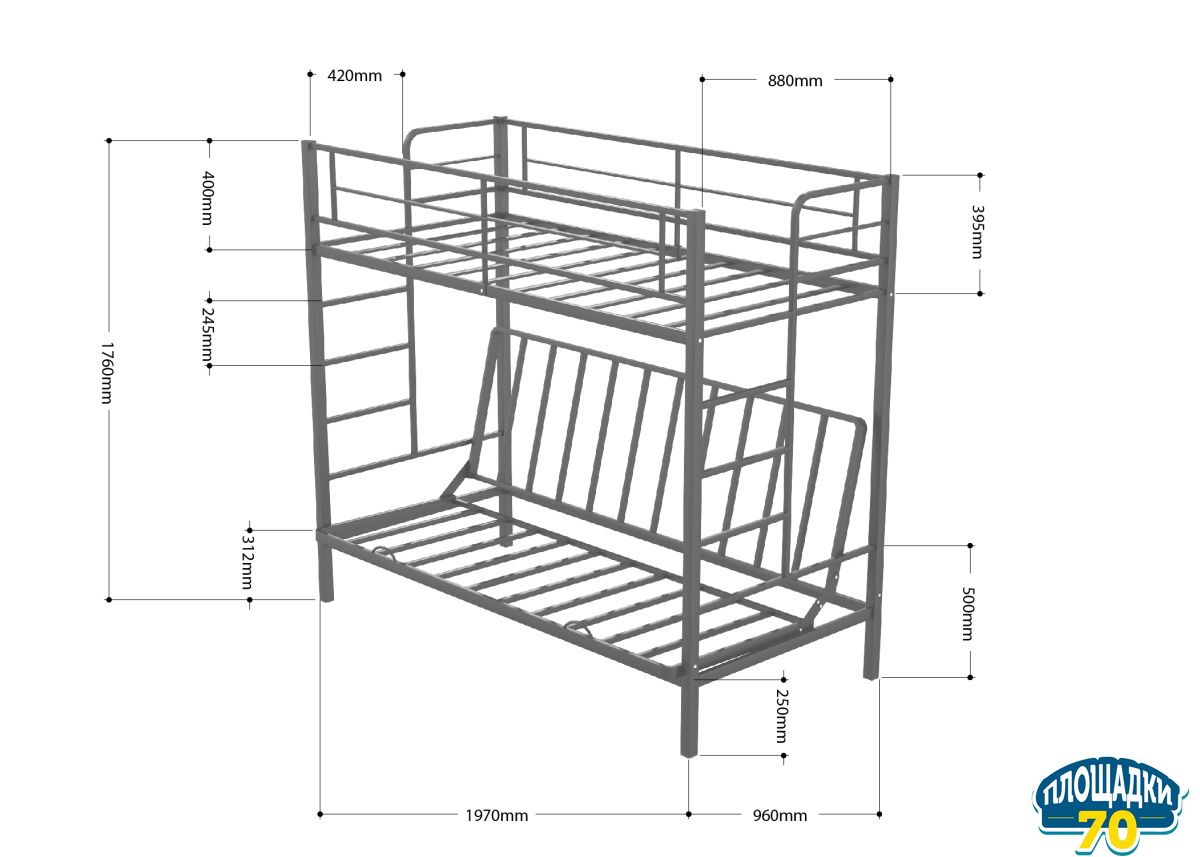 Нижний диван входит в стоимость изделия, цвет на выбор черный или светло-серый, верхний матрас приобретается отдельно.
