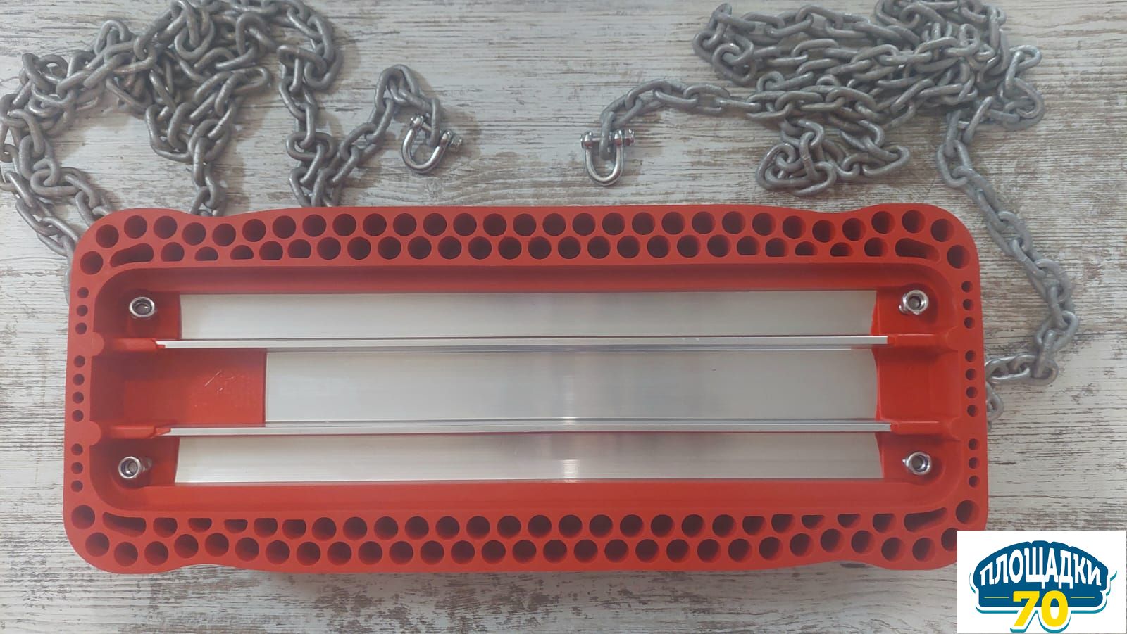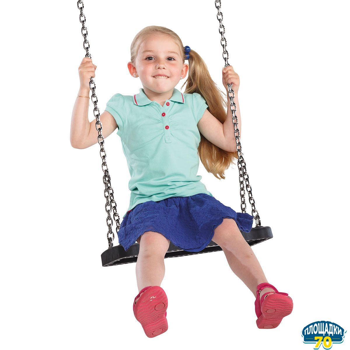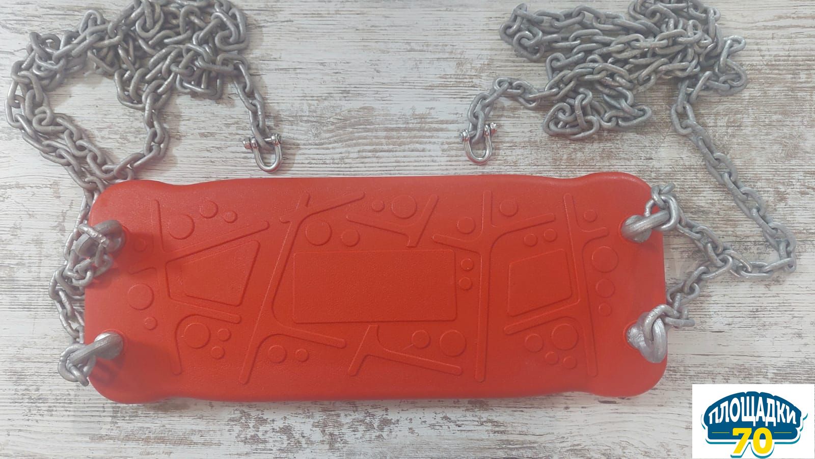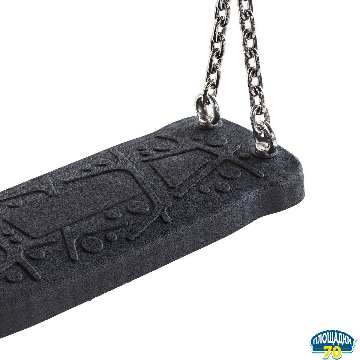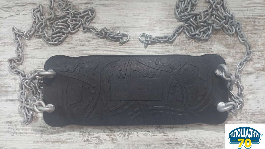 Резиновое сиденье для качелей КВТ производено из литого под давлением термопластичного эластомера. Цепи сверху завершаются D-образным шекелем. Сиденье и цепь доступна в комплекте.