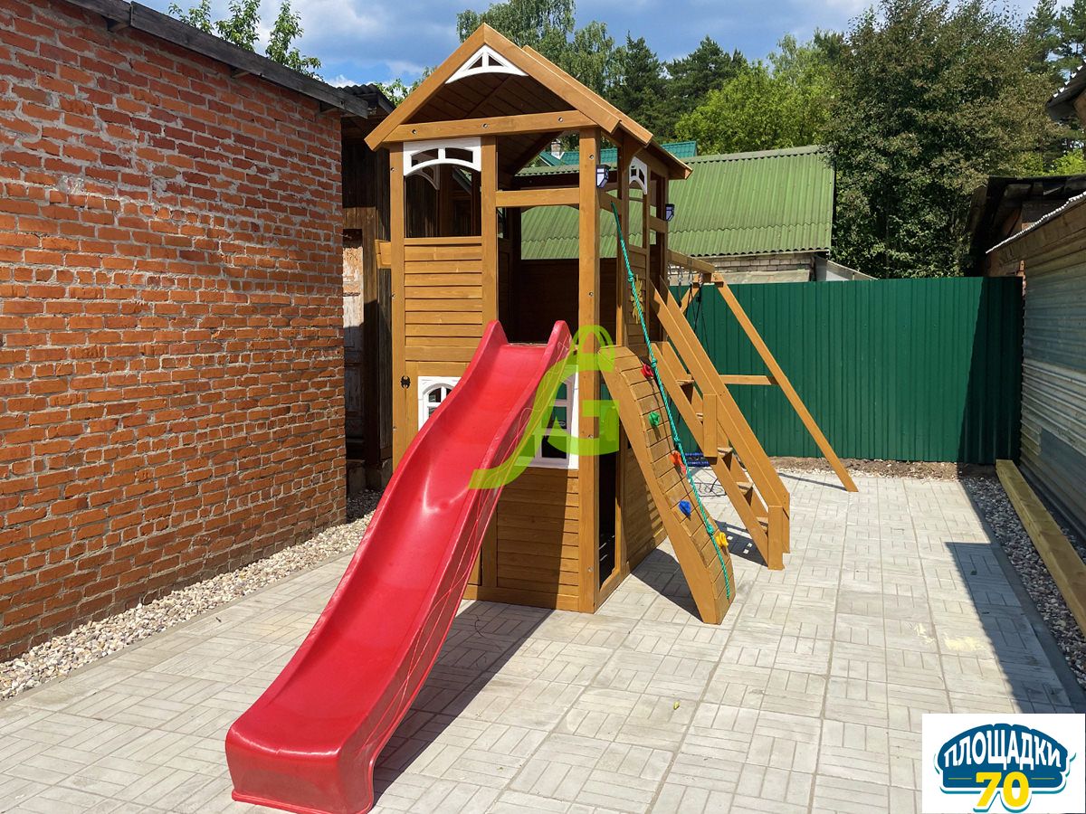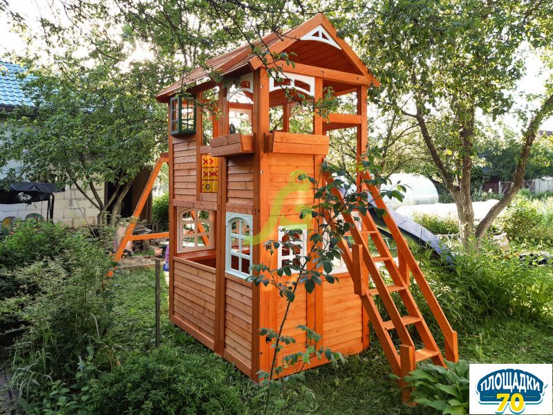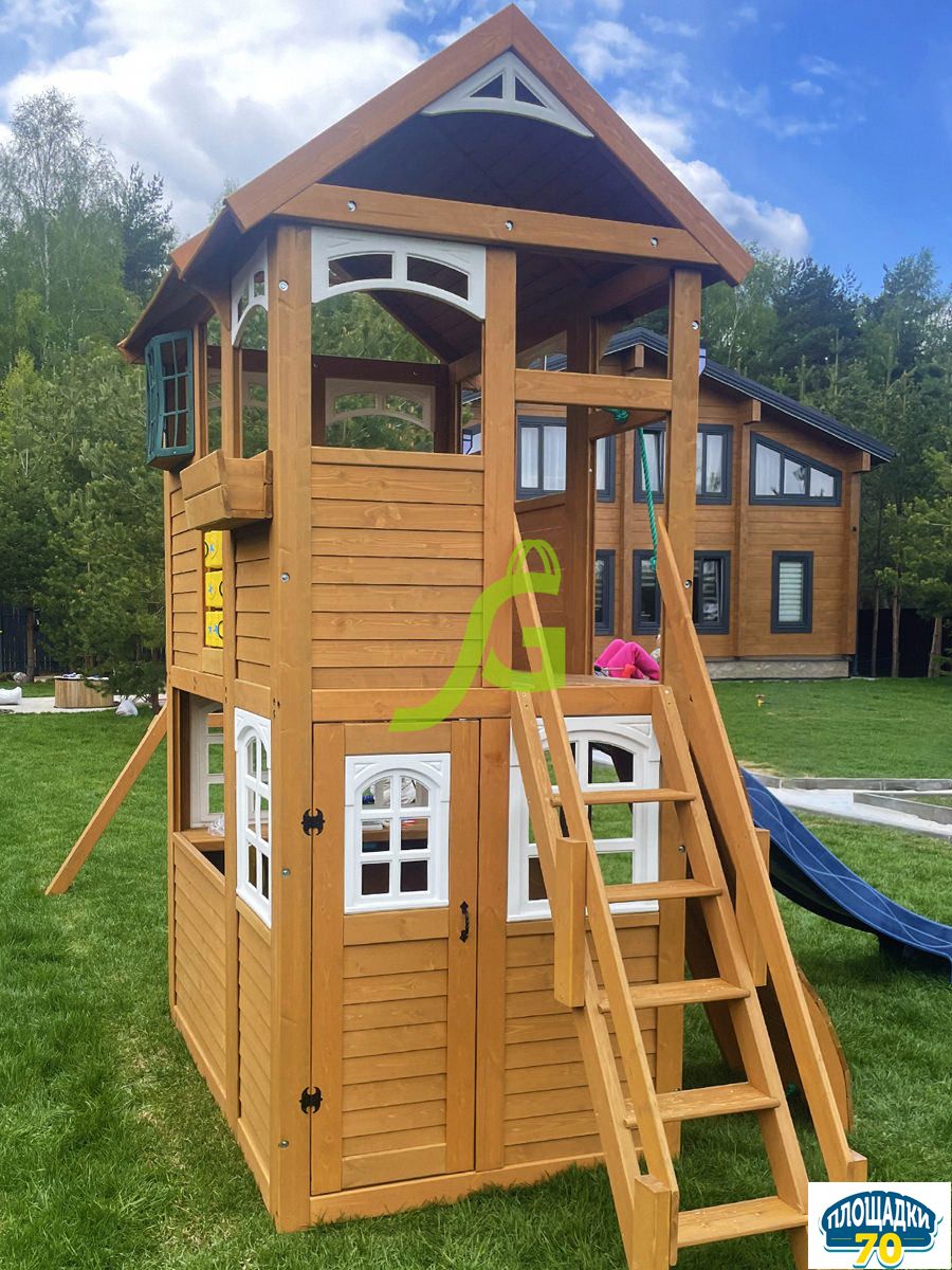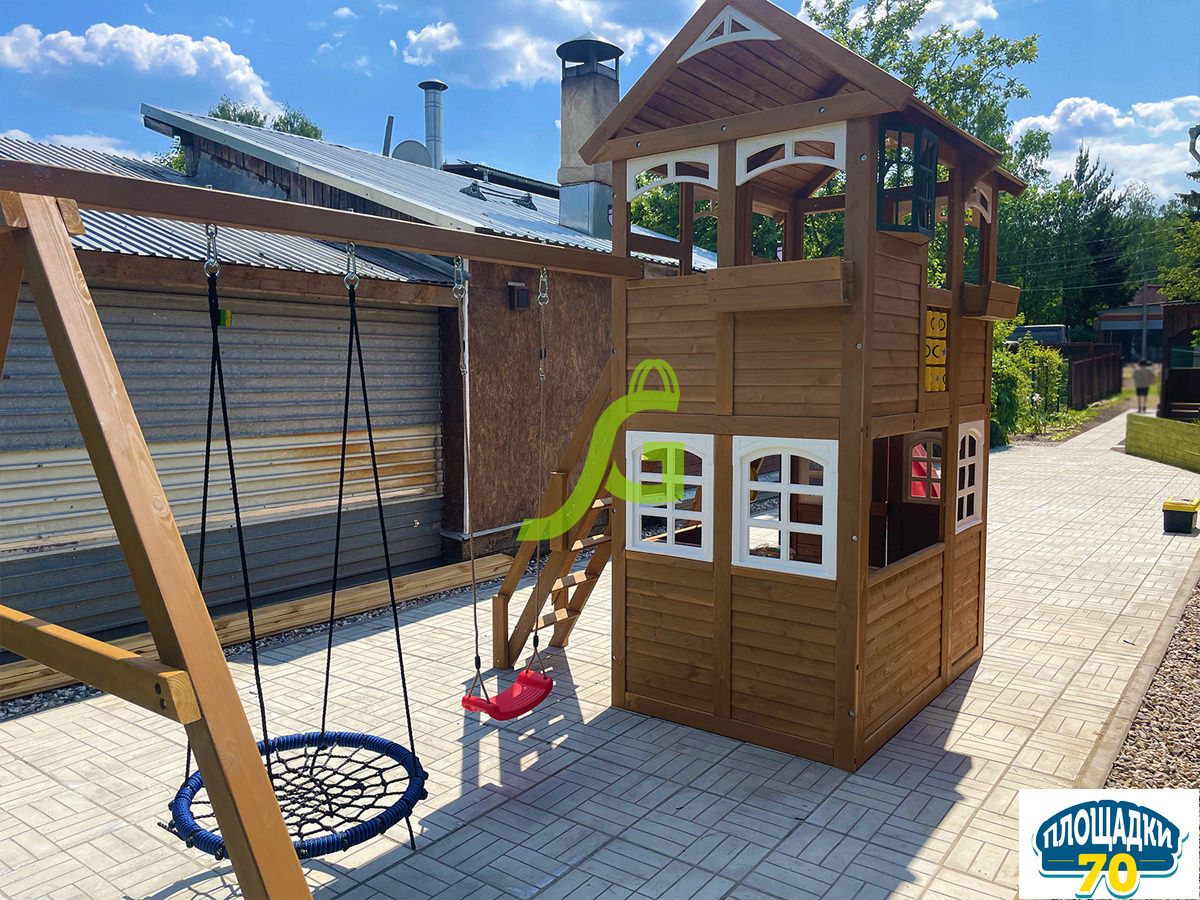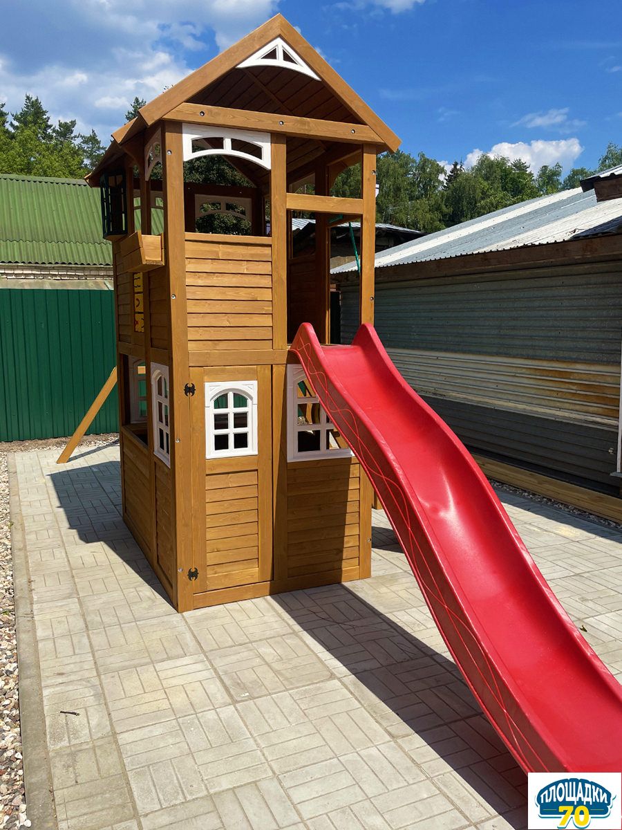 - - Закрытый двухуровневый игровой домик с дверью, деревянной крышей;