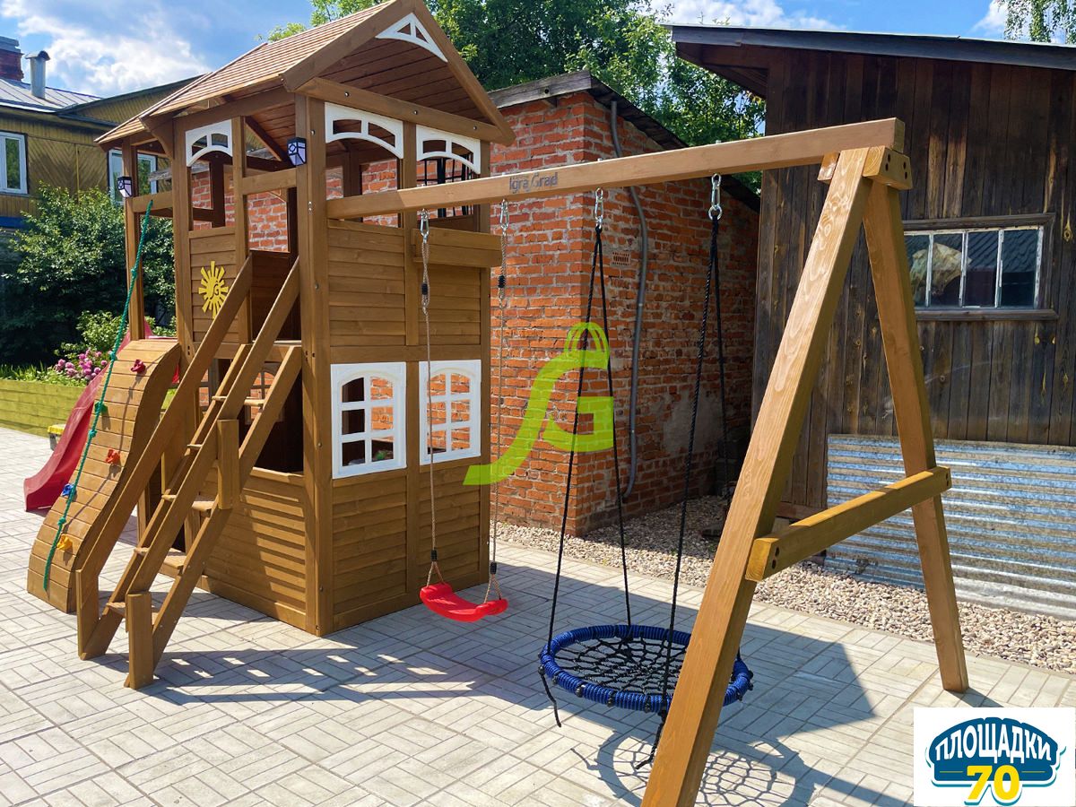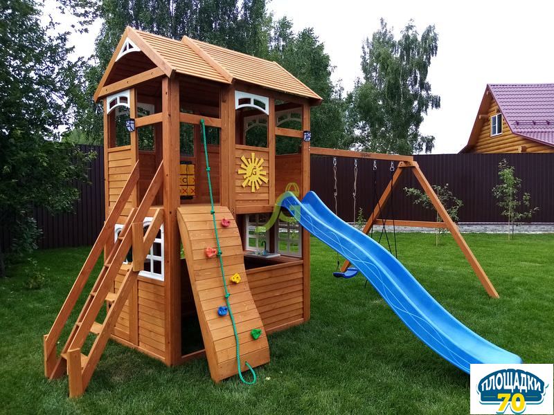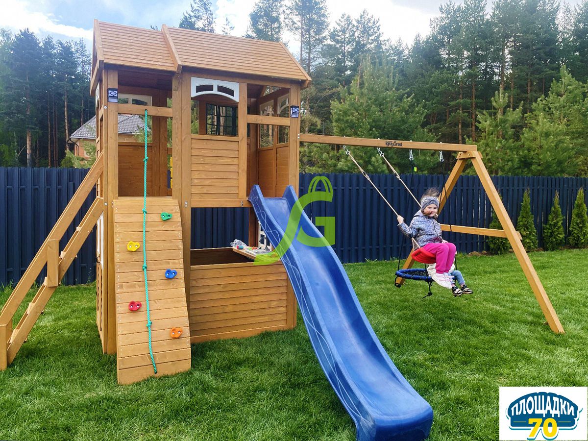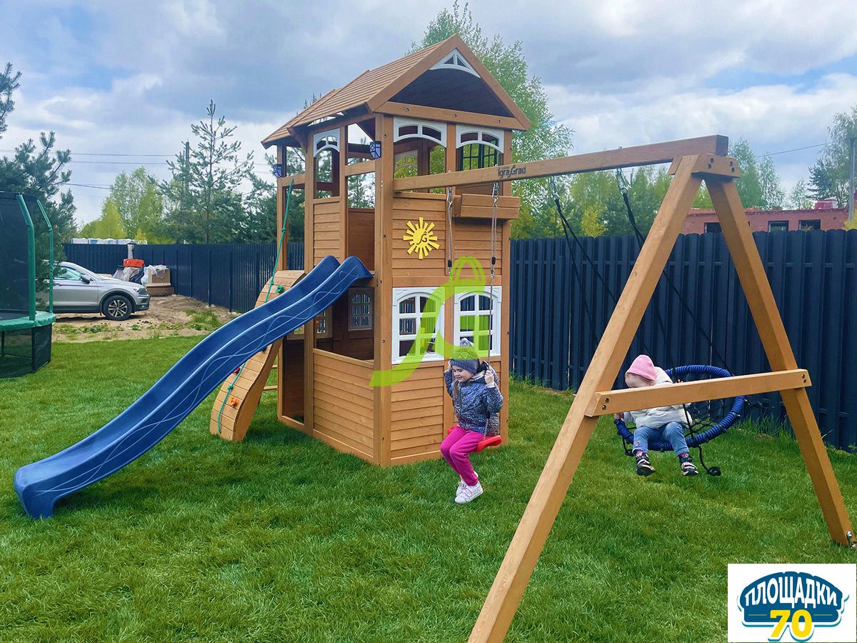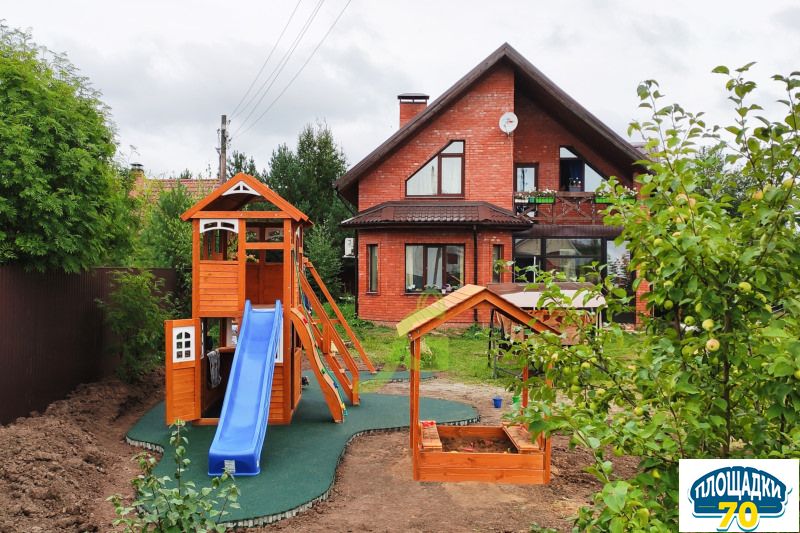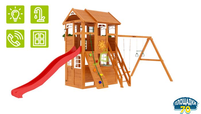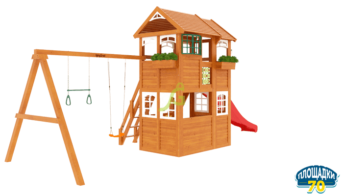 - - Закрытый двухуровневый игровой домик с дверью, деревянной крышей;