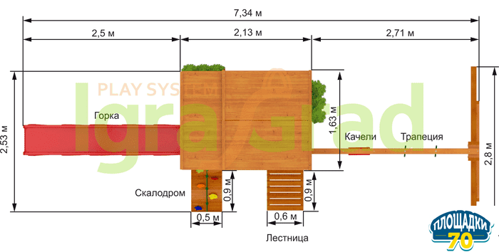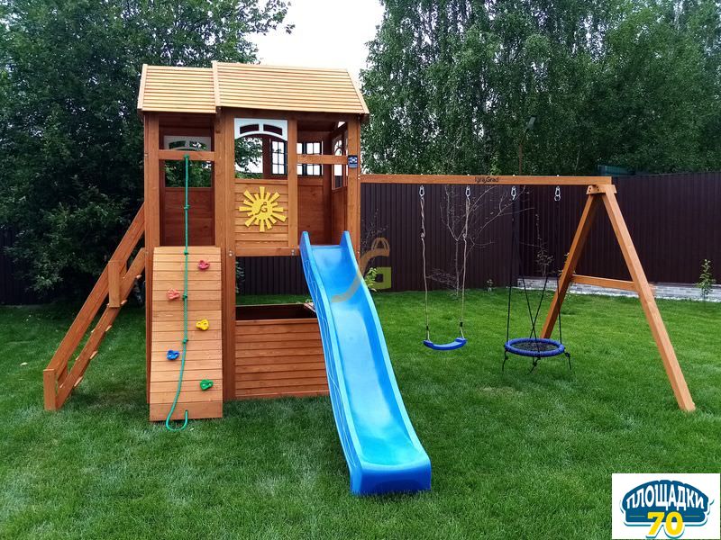Обращаем Ваше внимание, что цвет установленной детской площадки может отличаться от представленных изображений на сайте. Специфика окраски нетоксичными пропитками допускает отклонения в цветовой гамме отгружаемых изделий вследствие различного цвета натурального природного сырья и естественных компонентов, используемых для производства площадок.