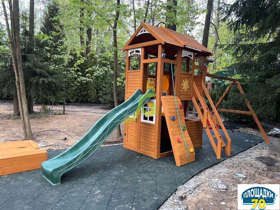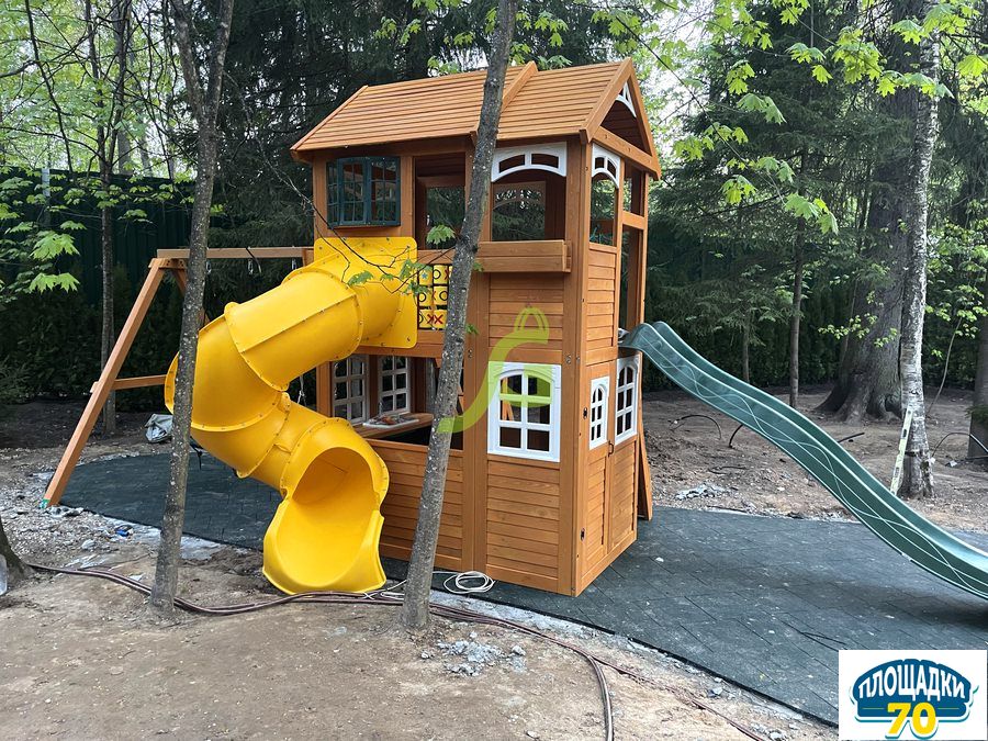 - - Закрытый двухуровневый игровой домик с дверью, деревянной крышей;