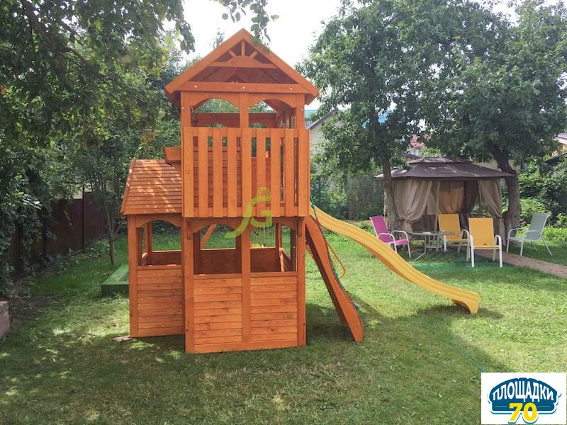 - - Закрытый двухуровневый игровой домик с дверью и деревянной крышей;