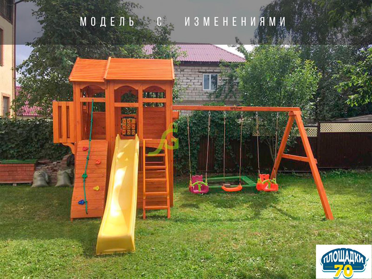 Обращаем Ваше внимание, что цвет установленной детской площадки может отличаться от представленных изображений на сайте. Специфика окраски нетоксичными пропитками допускает отклонения в цветовой гамме отгружаемых изделий вследствие различного цвета натурального природного сырья и естественных компонентов, используемых для производства площадок.