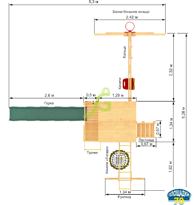 Основной материалСосна/ельОснованиеКленный брус 70*70 ммВысота2.95 мШирина5.3 мДлина5.28 мКачели-гнездо в комплекте60 смКоличество горок1 штТип скатаСкат с высоты 1,5 метраТип площадкиГотовый комплект с фурнитурой и отверстиями в узловых соединенияхВысота установки ската1,2 / 1,5 мДлина ската2,2 + 3 мДлина качельной балки2.5 мДеревянные перила в комплектедаОсобенности серииБюджетная линейка площадок "Собери сам" с максимально спортивным оснащениемМаксимальный вес300 кгВес216.36 кгРукоход в комплектеДаТип окраскиПропиткаИнструкция по сборкеДаТип крышиДеревянная крышаТип упаковкиКартонная упаковкаТип шлифовки2-х этапнаяНаличие присадки (отверстий для сборки)ДаЦветКаштанЕдиница измеренияшт -