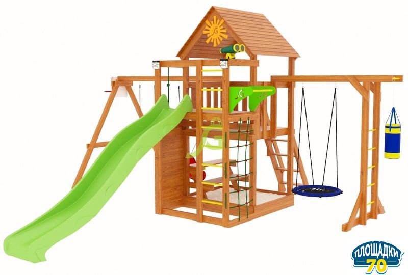Исследовательский инстинкт и огромное желание залезть выше головы присуще абсолютно всем детям! И не надо их за это ругать! Причём в наше время нужно ещё и хвалить малыша за то, что он исследует всё вокруг, а ни сидит за планшетом. Детская площадка IgraGrad Крафт Pro 4 – это то место, где можно безопасно проводить время: лазать вверх-вниз, качаться, играть с песком, кататься с горки.