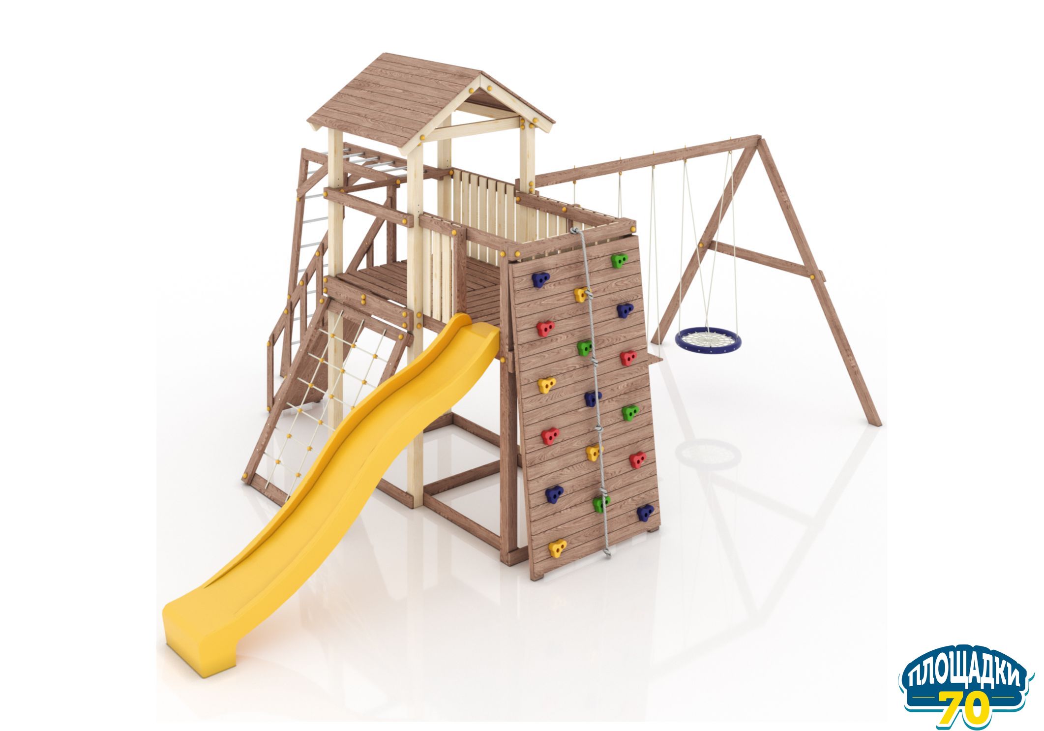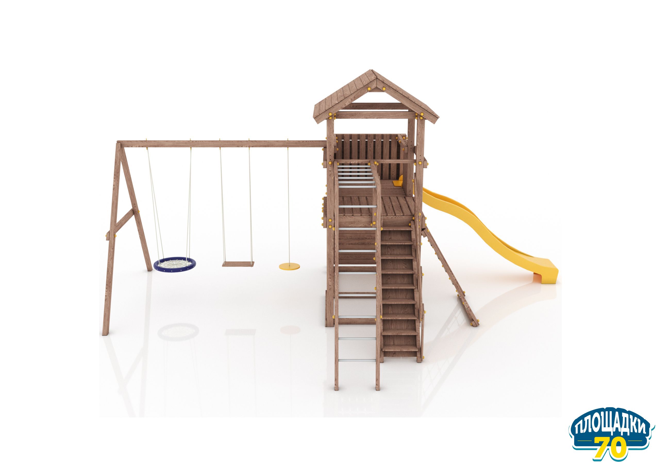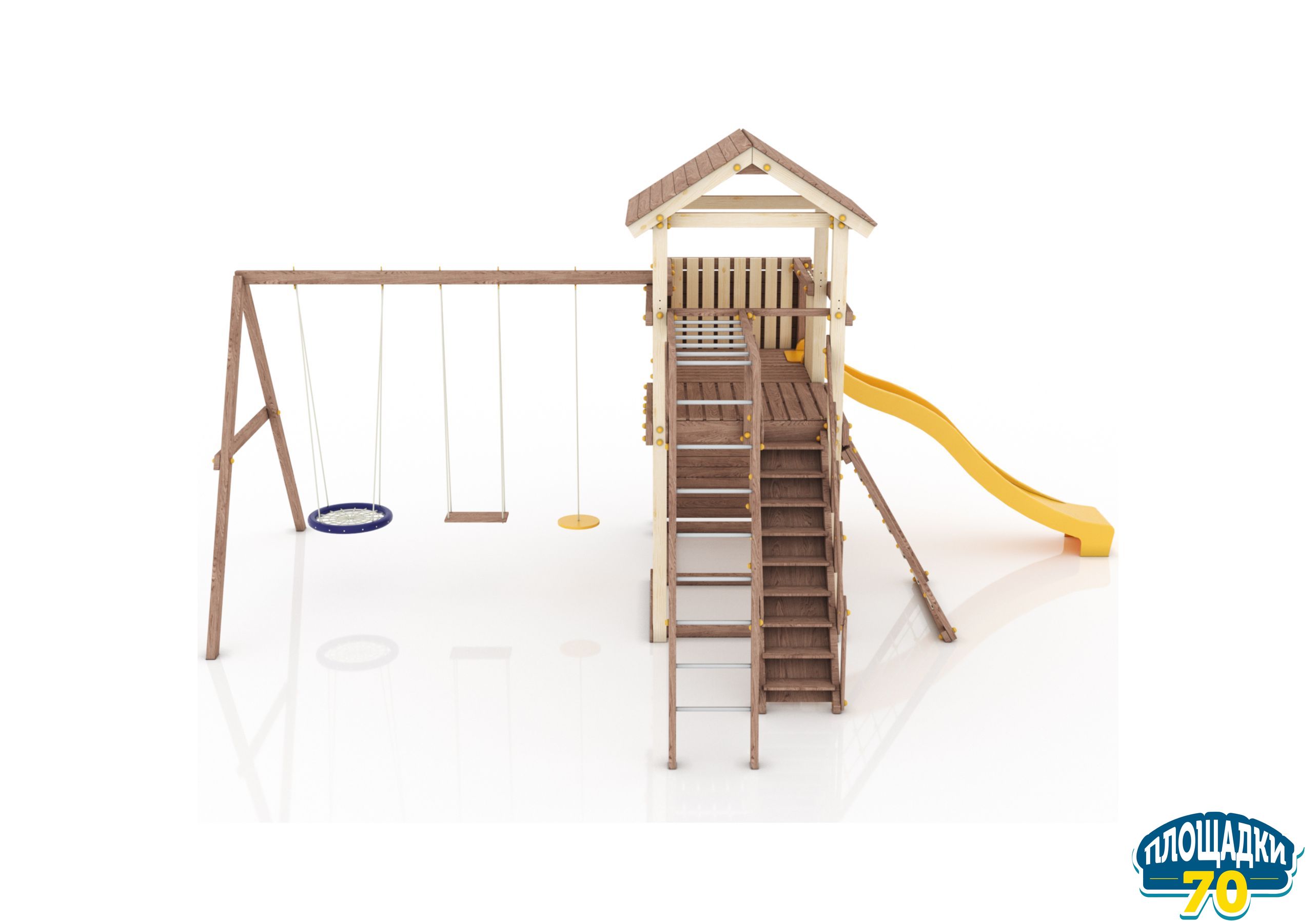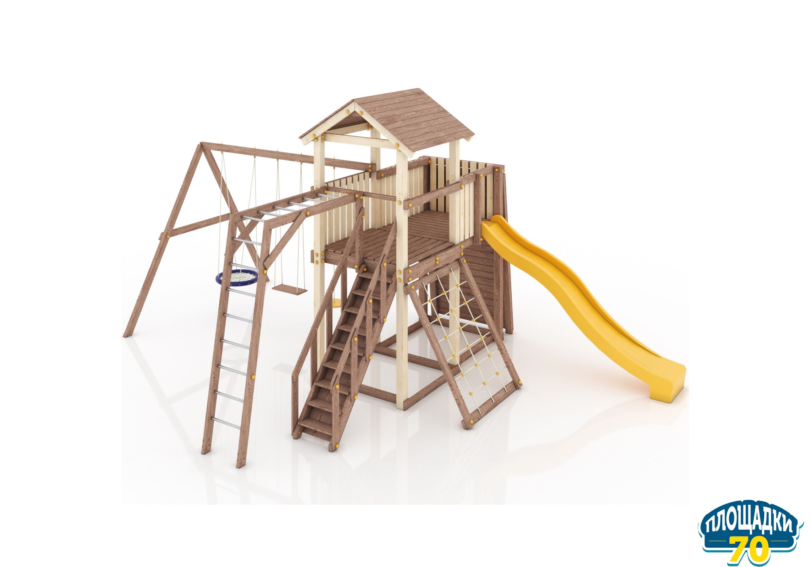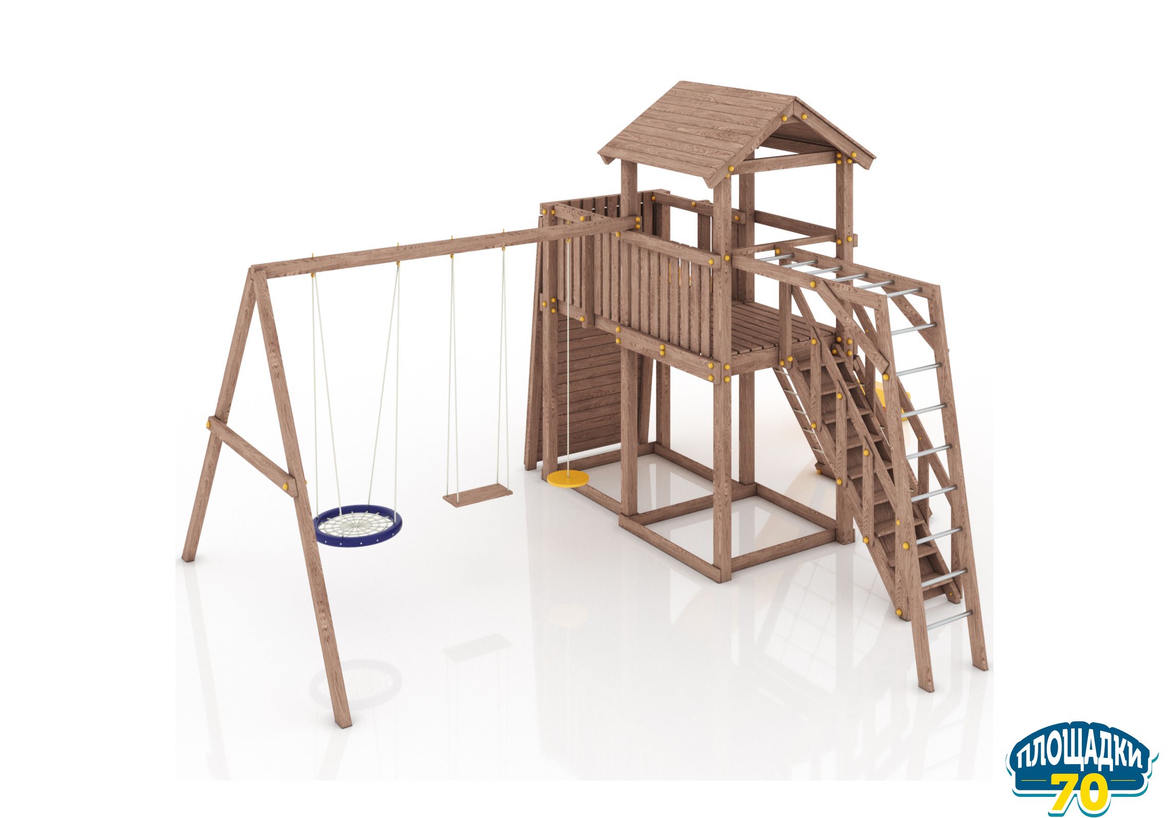Максимально возможная комплектация в сочетании с качелями-гнездом. Детская площадка в полной комплектации позволит вашим детям разнообразить свои игры на свежем воздухе, а так же пригласить своих друзей для веселого времяпрепровождения. Места хватит всем!