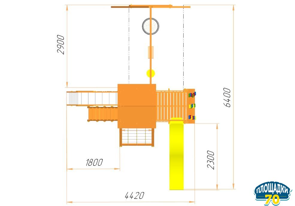 Детская игровая площадка предназначена для детей от 3 до 12 лет, и создает условия, обеспечивающие физическое развитие ребенка, развивающие координацию движений, преодоление страха высоты, ловкость и смелость, чувство коллективизма в массовых играх.