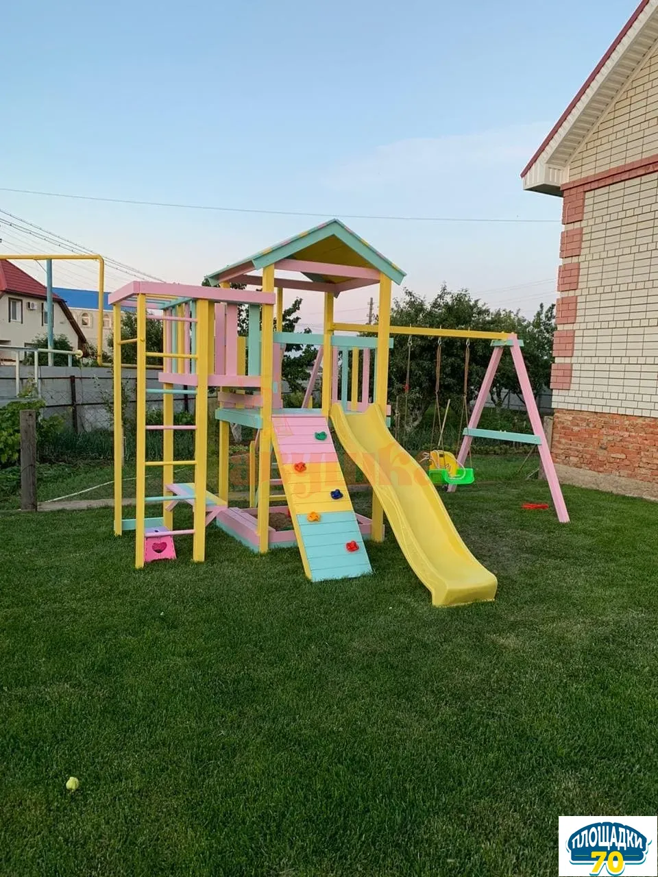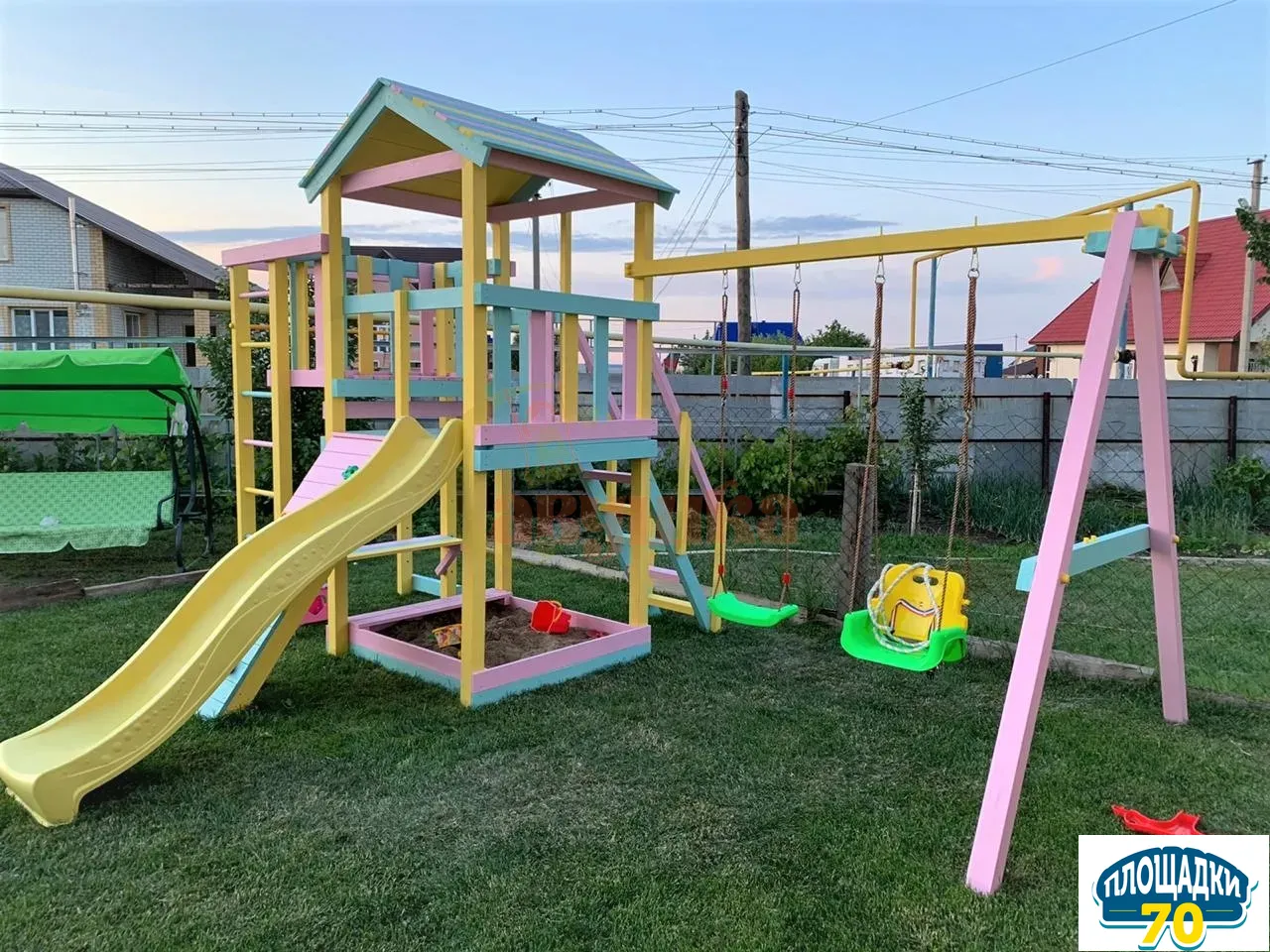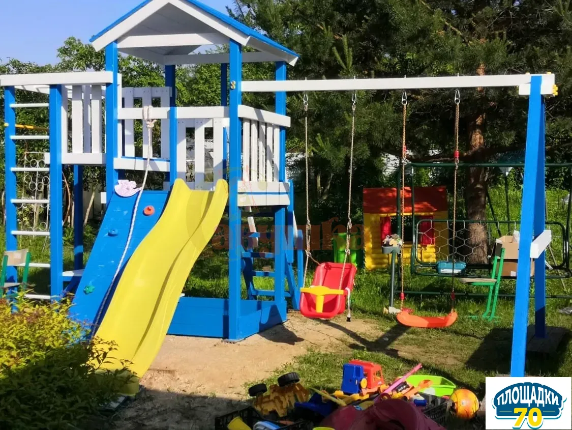 Горка не оставит равнодушным ни одного ребенка. Скатившись вниз, сразу захочется покачаться на качелях, и здесь они не в единственном экземпляре. На выбор предлагаются: «Лодочка», «Люкс», «Trix» и наиболее популярные сейчас «Гнездо». Навесное оборудование качественное, изготовлено в Бельгии.