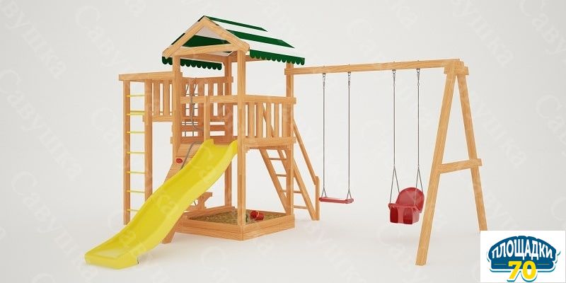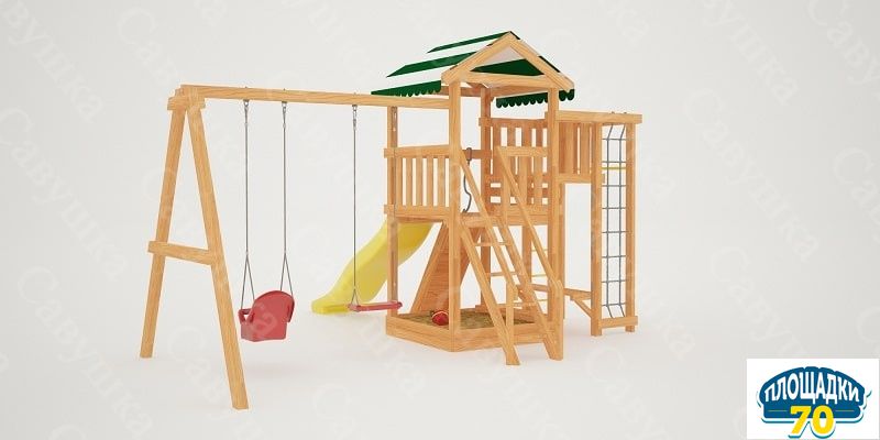 Конструкция сертифицирована и безопасна. Крепежи скрыты под хорошо закрепленными заглушками – поэтому даже малыши не поранятся. Каркас состоит из натуральных деталей – клееного бруса квадратного сечения со стороной 75 мм, качество которого соответствует ГОСТ 9885-95.2. Во избежание получения заноз и ссадин дерево отшлифовано, а края скруглены. Материал экологичен и не имеет лакокрасочного покрытия.Особенности модели