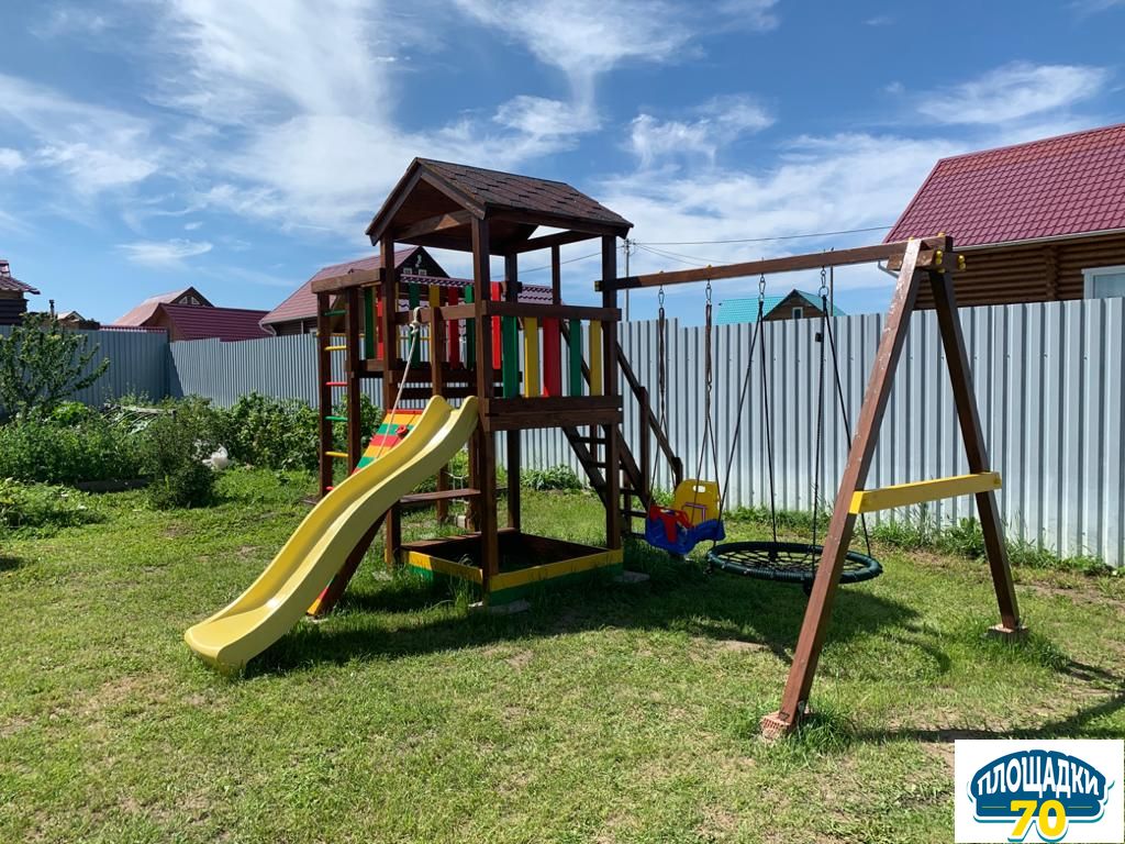 Горка не оставит равнодушным ни одного ребенка. Скатившись вниз, сразу захочется покачаться на качелях, и здесь они не в единственном экземпляре. На выбор предлагаются: «Лодочка», «Люкс», «Trix» и наиболее популярные сейчас «Гнездо». Навесное оборудование качественное, изготовлено в Бельгии.Преимущества