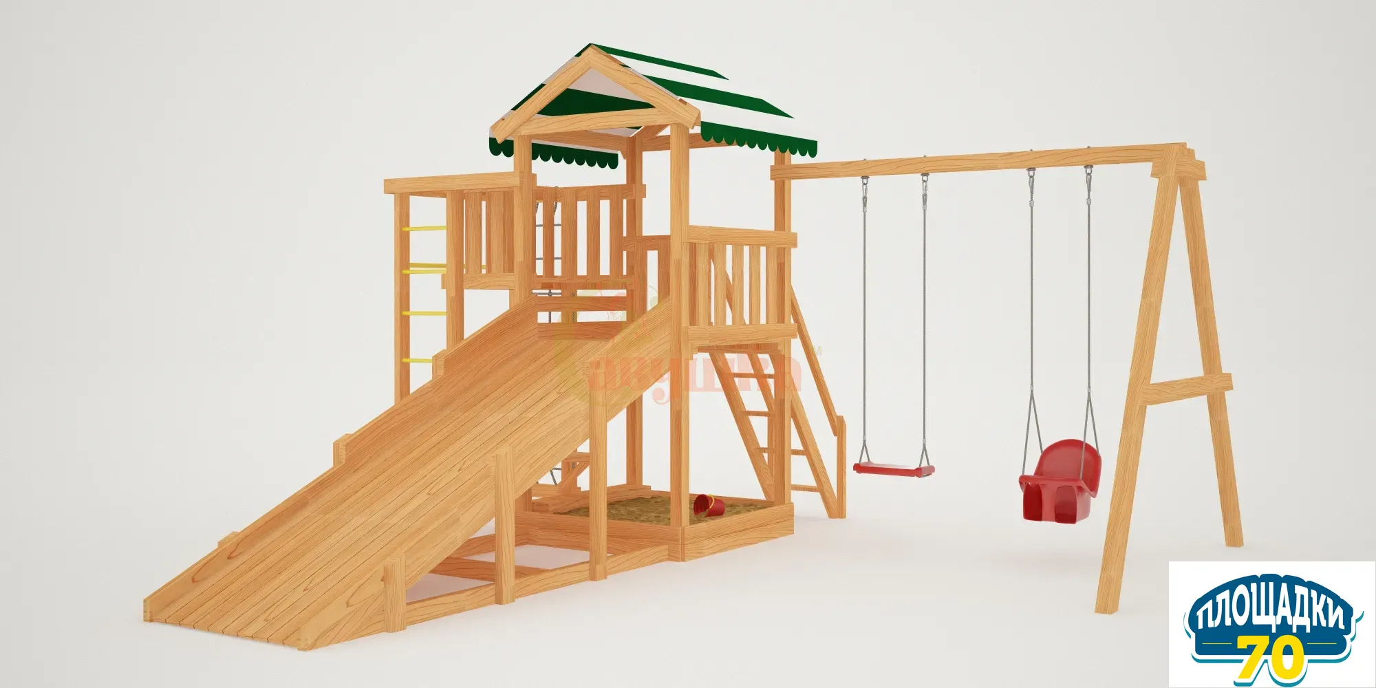 Горка точно понравится каждому малышу, а прокатившись на горке, можно покататься на качелях. Качели вы можете выбрать самостоятельно: «Лодочка», «Люкс», «Trix», «Гнездо». Навесное оборудование изготавливается в Бельгии, качество соответствует международным стандартам качества.