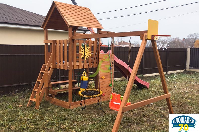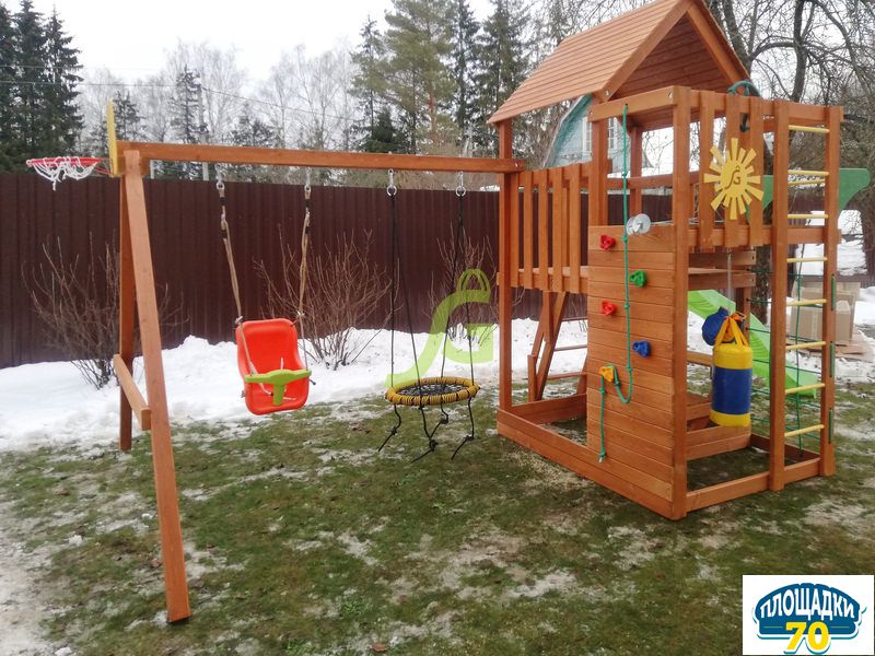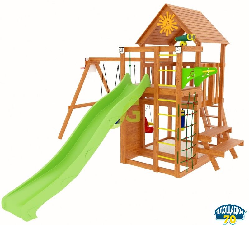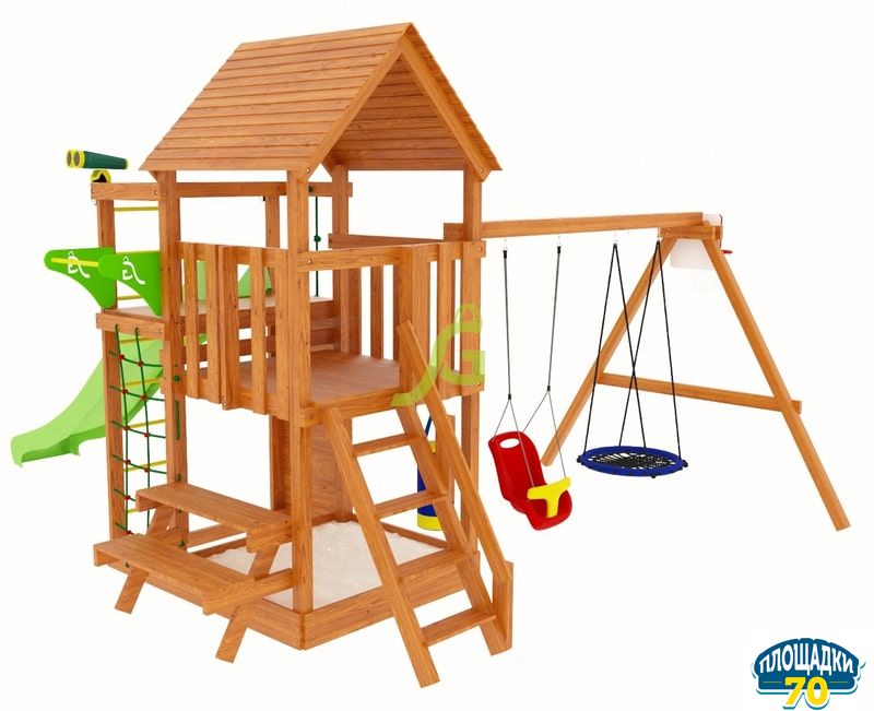 Главное преимущество детской площадки, использование при её производстве качественных материалов: экологически чистая древесина, прочный пластик, надёжная фурнитура. Чтобы деревянная конструкция длительный срок радовала своих маленьких пользователей, она защищена специальной пропиткой на водной основе. Дерево не нагревается на солнце и не обжигает нежную кожу детей. Такое явление часто происходит на детских площадках из металла.
