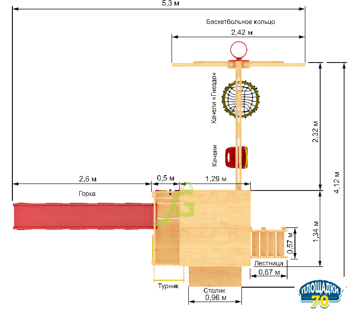 Данная площадка комплектуется с деревянными перилами для лестницы