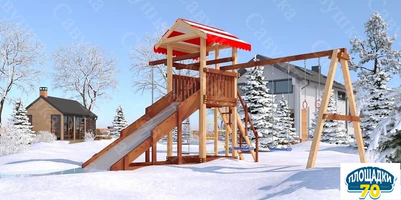 Собирая площадку, в зависимости от сезона, вы можете установить летнюю пластиковую горку, или деревянный зимний скат.