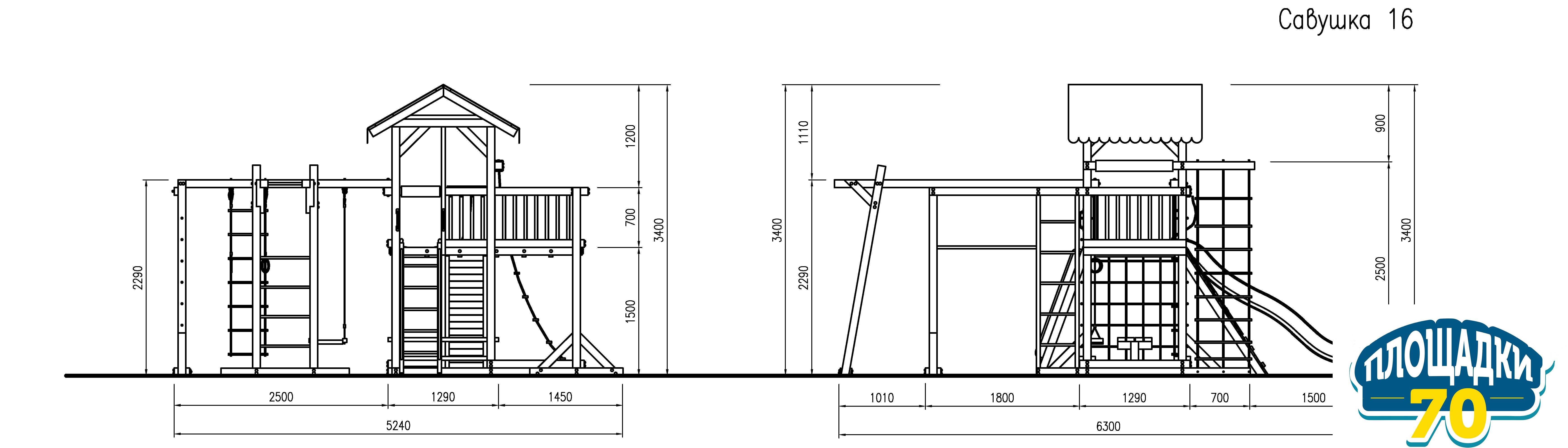 Детская площадка «Савушка 16» дает возможность ощутить радость движения и окрепнуть физически детям любого возраста. Основным материалом выступает клееный брус. Его сечение - квадрат, со стороной 90 мм.