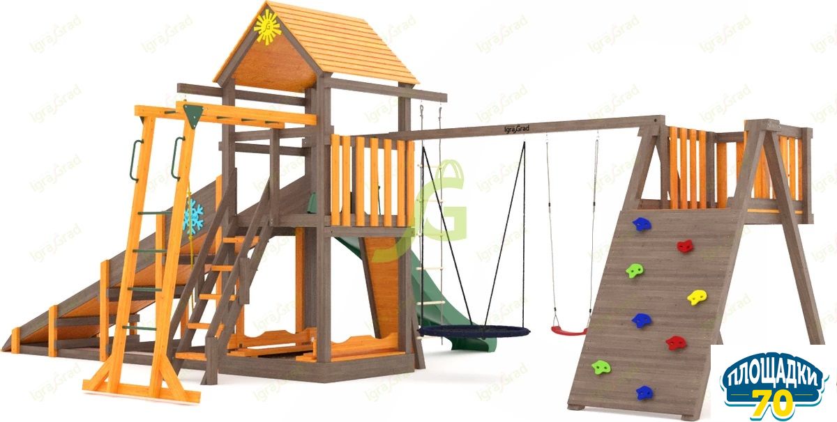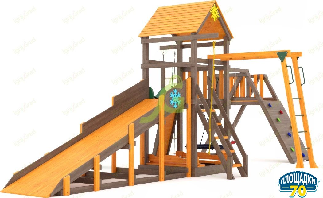 Обращаем Ваше внимание, что цвет установленной детской площадки может отличаться от представленных изображений на сайте. Специфика окраски нетоксичными пропитками допускает отклонения в цветовой гамме отгружаемых изделий вследствие различного цвета натурального природного сырья и естественных компонентов, используемых для производства площадок.