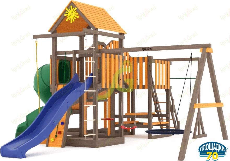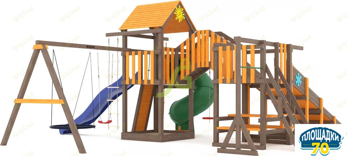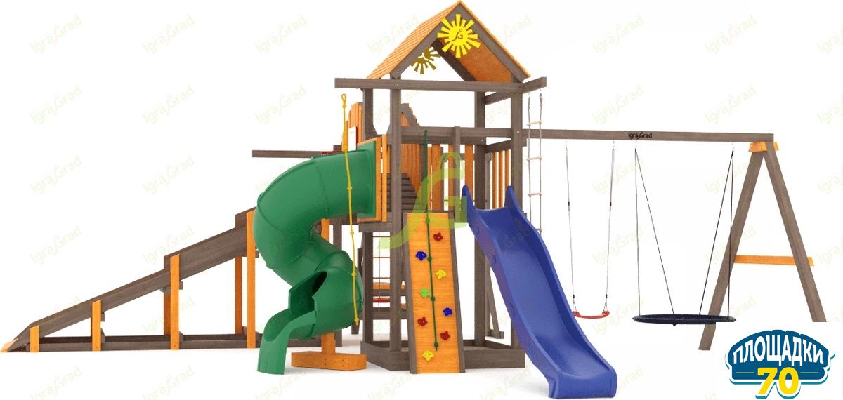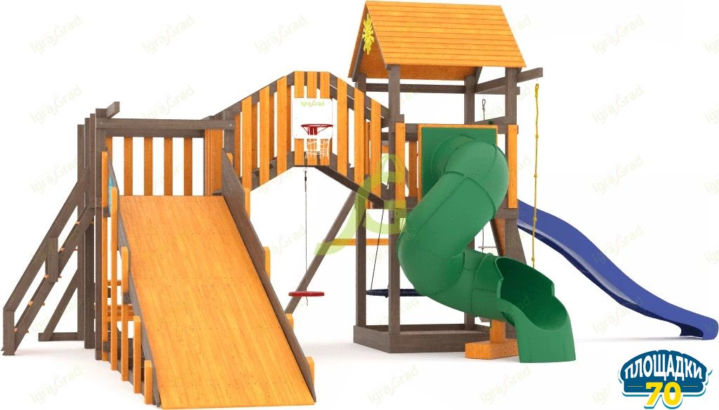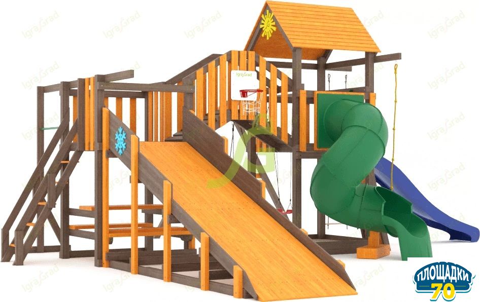 Обращаем Ваше внимание, что цвет установленной детской площадки может отличаться от представленных изображений на сайте. Специфика окраски нетоксичными пропитками допускает отклонения в цветовой гамме отгружаемых изделий вследствие различного цвета натурального природного сырья и естественных компонентов, используемых для производства площадок.