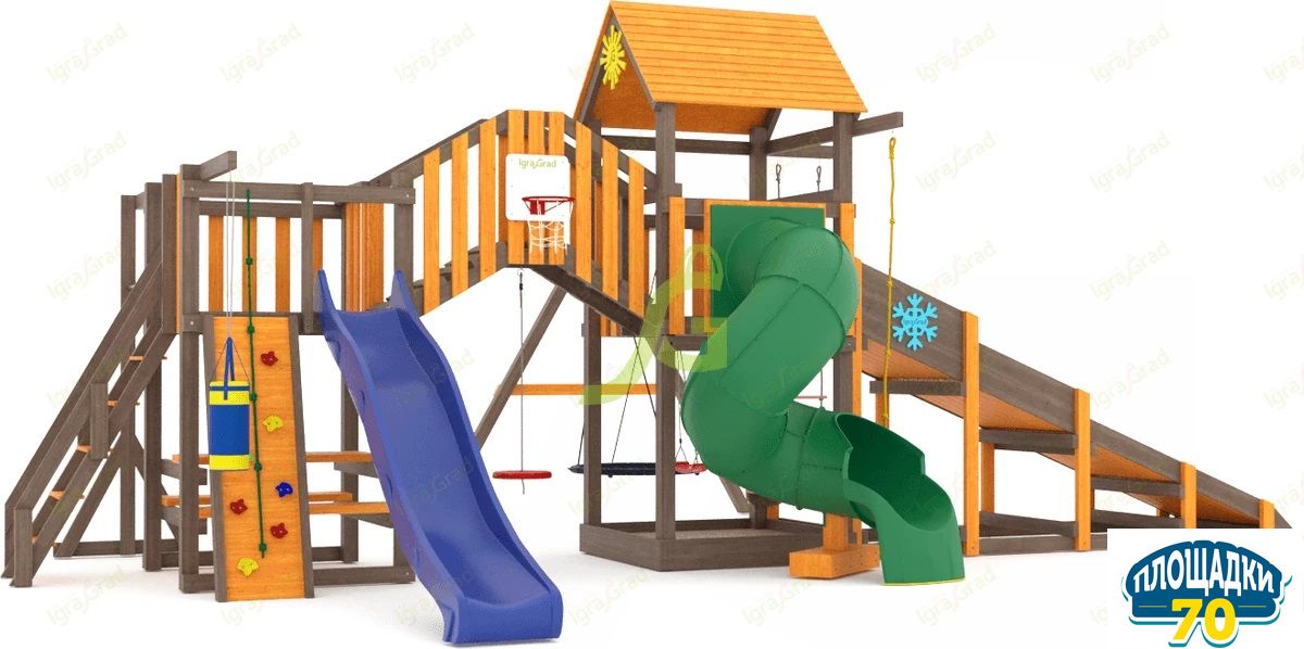 Обращаем Ваше внимание, что цвет установленной детской площадки может отличаться от представленных изображений на сайте. Специфика окраски нетоксичными пропитками допускает отклонения в цветовой гамме отгружаемых изделий вследствие различного цвета натурального природного сырья и естественных компонентов, используемых для производства площадок.