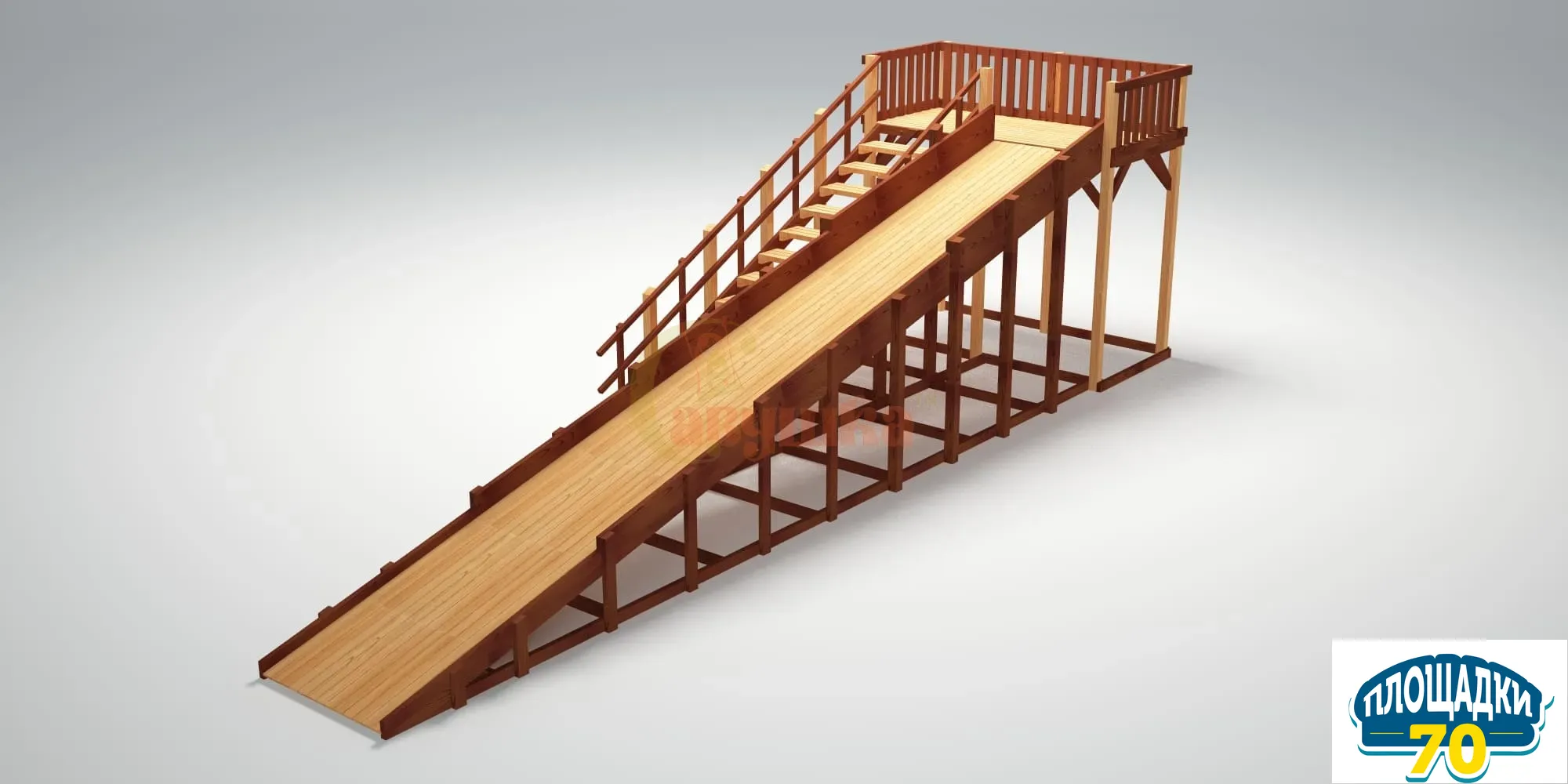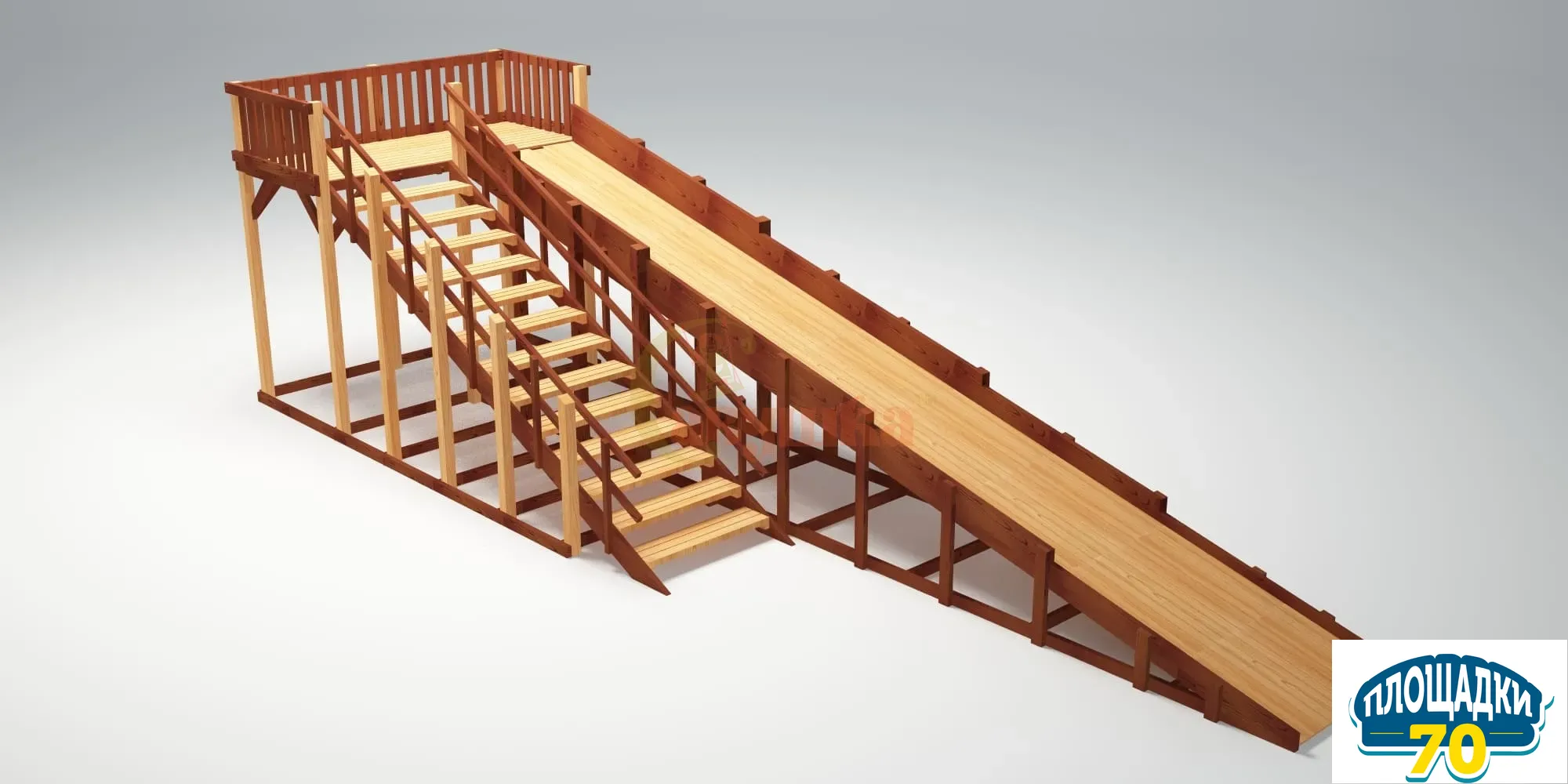 Все поверхности тщательно шлифуются на специальных станках, а углы скругляются. Площадка горки имеет дополнительные ограждения – мы позаботились о безопасной игре ваших детей.