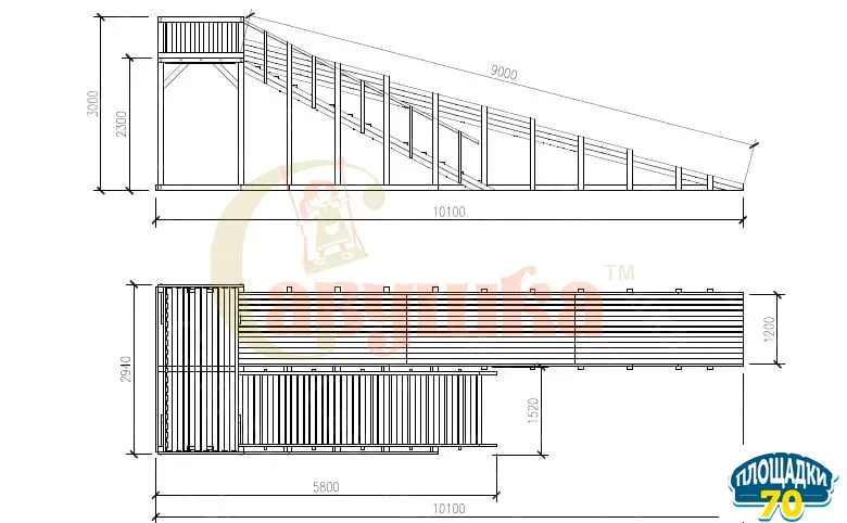 «Савушка Зима-8» – это лучшая модель для взрослых и маленьких любителей зимнего катания. Конструкция заливного ската имитирует настоящую снежную гору. При проектировании этой площадки наши инженеры увеличили длину ската до максимально возможной. Теперь это 9 метров ни с чем несравнимого удовольствия! Скат имеет достаточную ширину для комфортного скатывания ребенка на ватрушке или ледянке.