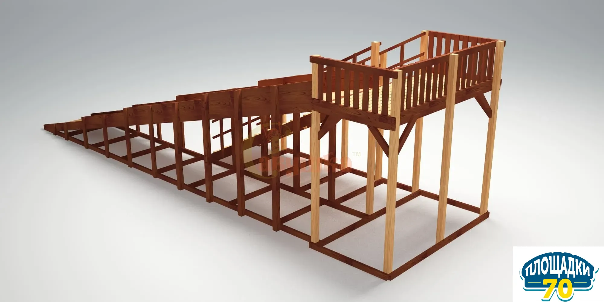 Все комплексы компании производятся по ГОСТ. Их рама собирается из экологичного, прочного, долговечного материала – клееного бруса с квадратным сечением 90 х 90 мм. Наши мастера обязательно покрывают дерево несколькими слоями сертифицированной атмосферостойкой краски, которая подчеркивает натуральную фактуру древесины и защищает ее от осадков при любых погодных условиях.